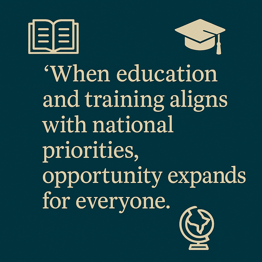 When education is aligned with national priorities, students benefit from clearer career pathways, employers benefit from a reliable talent pipeline, and the country benefits from stronger economic performance.